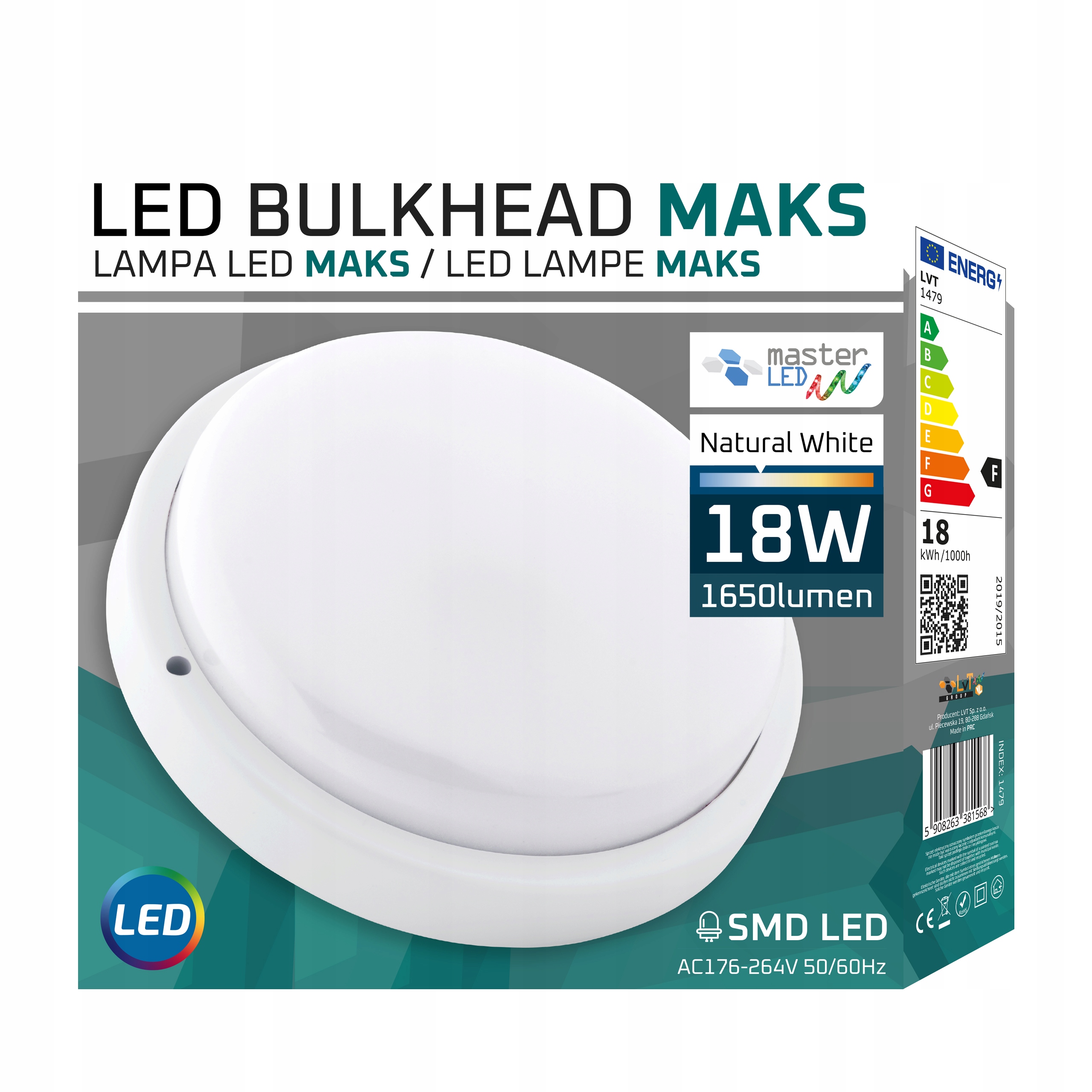 Lumină LED de exterior Masterled, albă, 18W, 1650 lumeni, culoare lumina neutră (4000K), grad de protecție IP54 este o solutie de iluminat perfecta, inovatoare pentru casa sau camera ta. Datorita dimensiunilor ei, este perfecta pentru toate pantele, tavanele, cladirile si subsolurile.