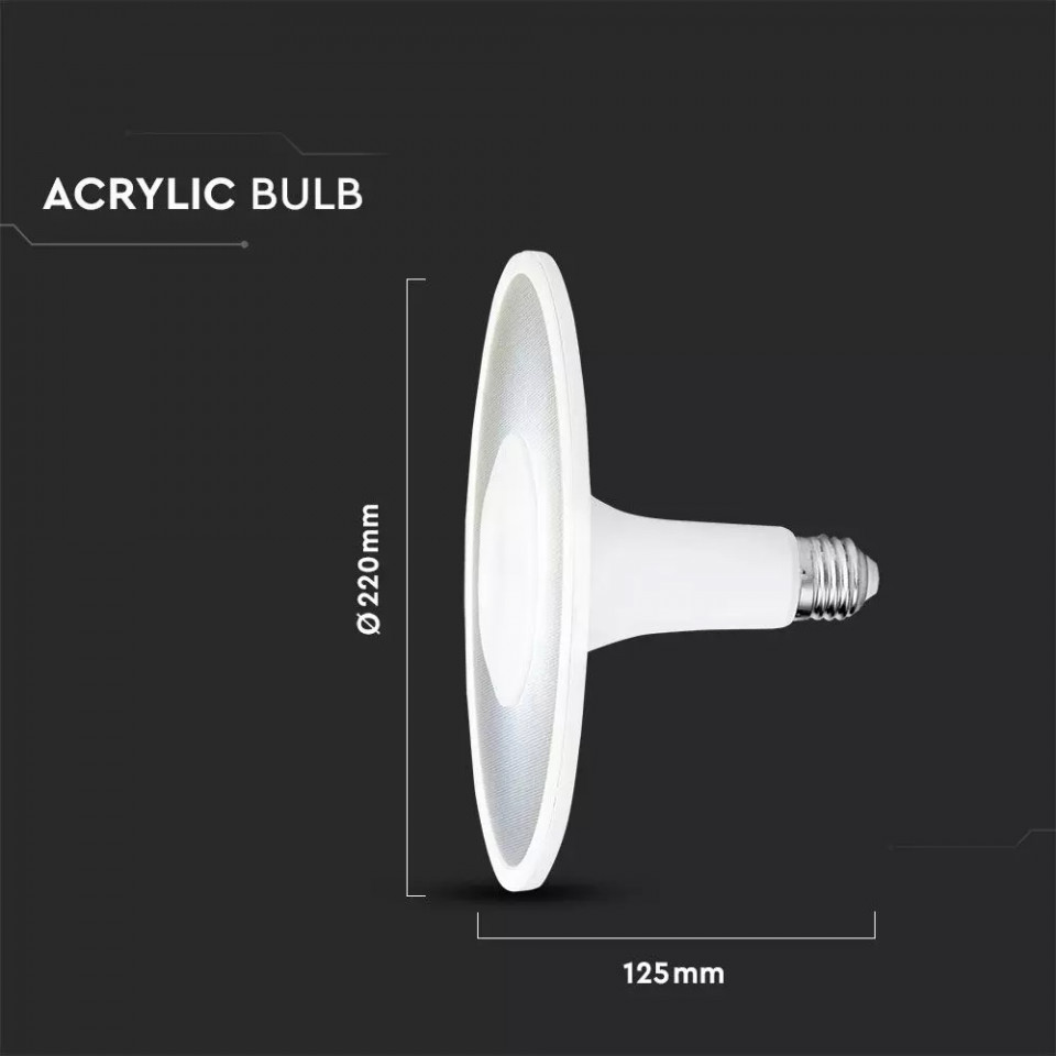 Bec LED Acrilic UFO V-TAC, 18W(70W), E27, 920 lm, lumina rece (6400K), alb, clasa energetica G