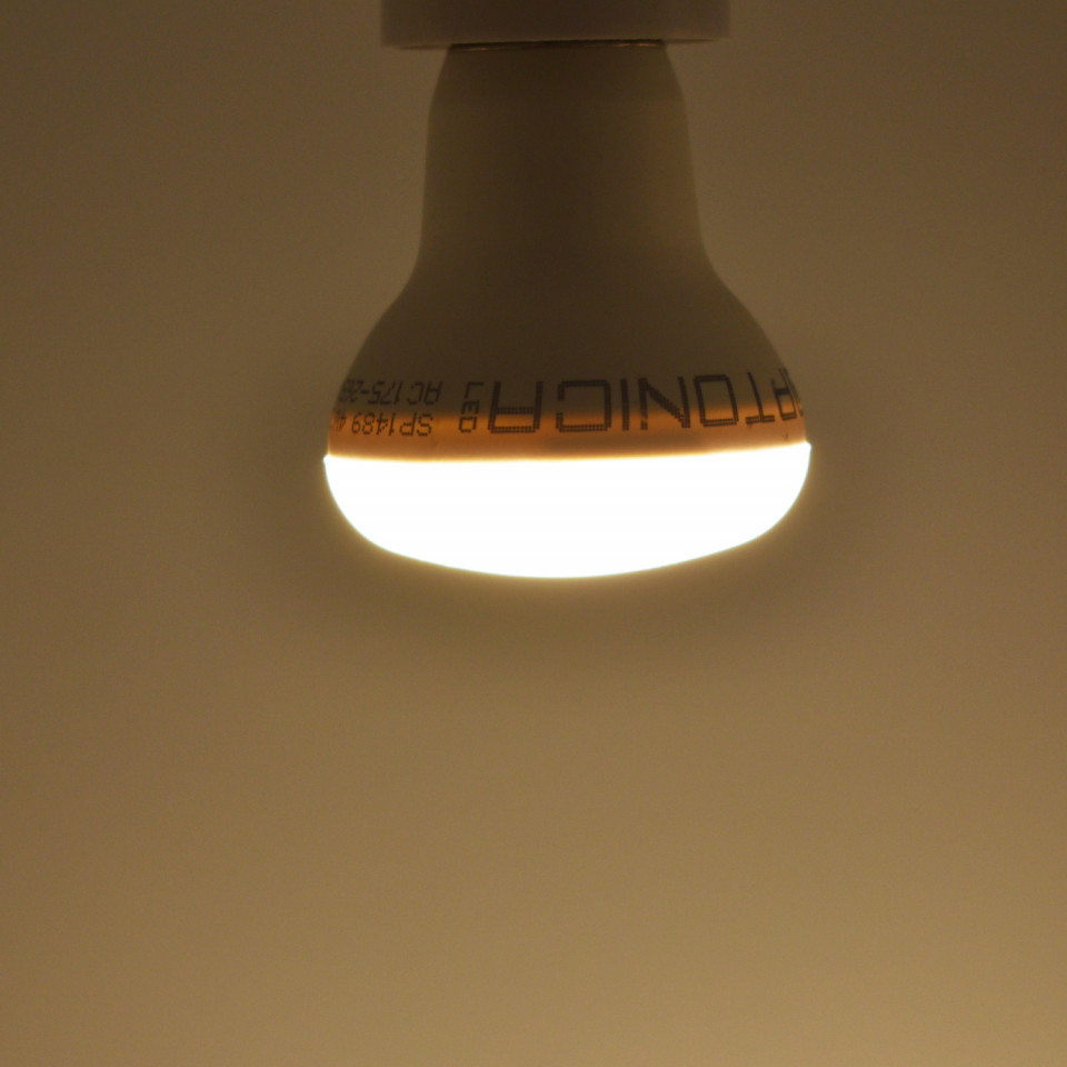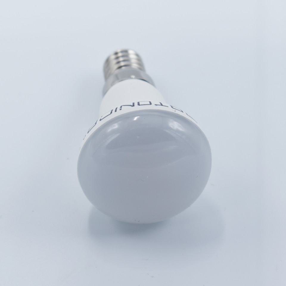 Realizat dintr-o combinație de plastic și aluminiu, acest bec R39 are un unghi larg de iluminare de 200°, asigurând o distribuție echilibrată a luminii. Designul său compact și durabil, cu o durată de viață de 25.000 de ore, înseamnă că va lumina spațiile tale preferate ani de zile.